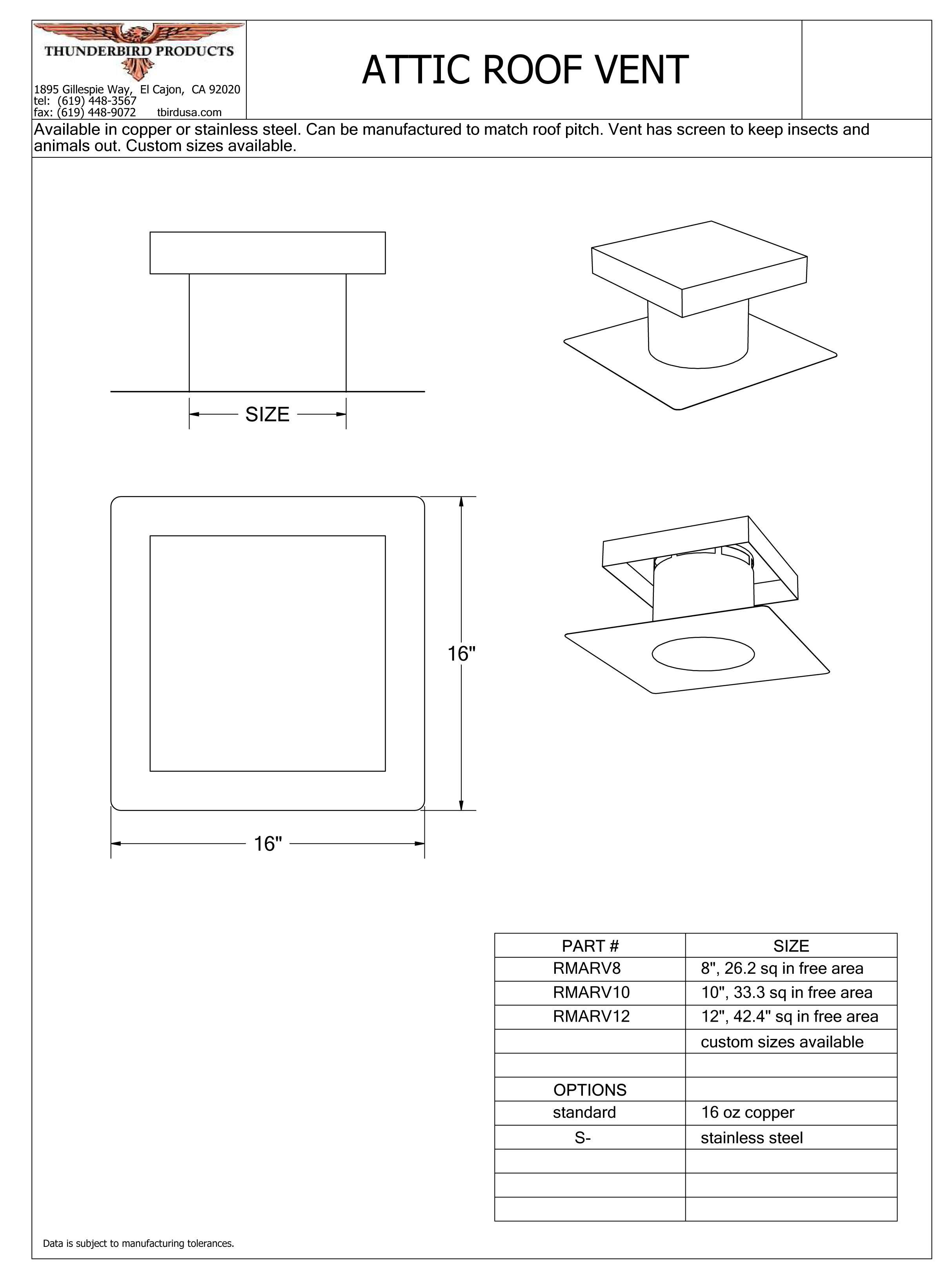 Product Drawings | Attic Roof Vent PDF Drawing![]() Attic Roof Vent CAD Drawing ![]() |