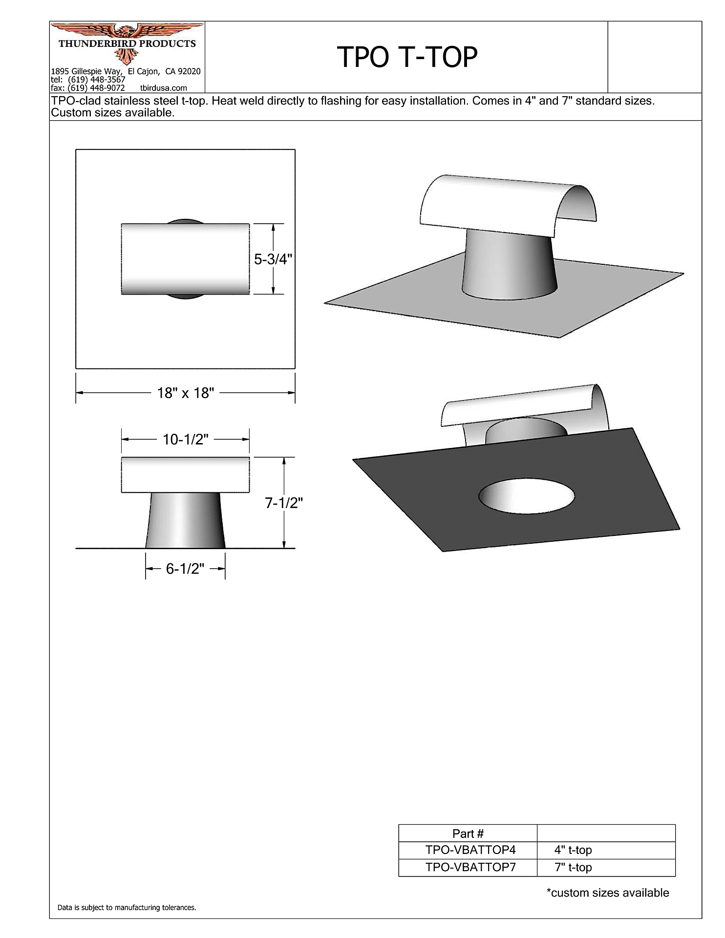 - Ideal for use with TPO or PVC roofing systems, this T-top vent provides essential ventilation while maintaining the integrity of your roof.